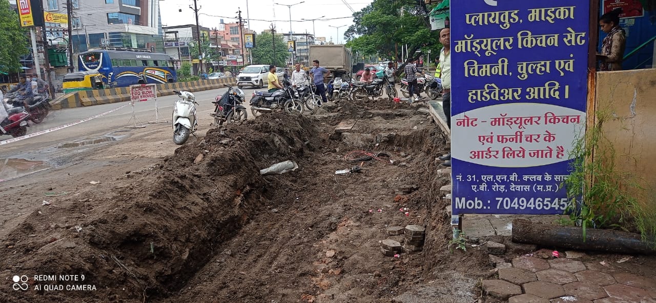 देवास लाइव। एबी रोड पर एलएलबी क्लब से भोपाल चौराहे तक नगर निगम द्वारा नाले का निर्माण किया जा रहा है ताकि जलजमाव की स्थिति ना बने। नाला बनने की शुरुआत होते ही व्यापारियों ने विरोध शुरू कर दिया और भाजपा नेताओं को बुला लिया। इससे फिलहाल काम ठप हो गया है।