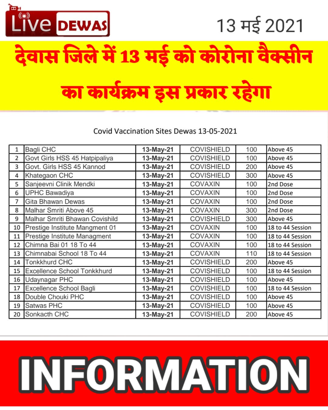 देवास जिले में 13 मई को वैक्सीनेशन कब और कहां होगा देखिए