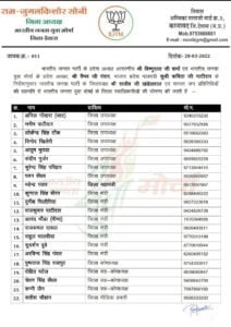 देवासराजनीतिभारतीय जनता युवा मोर्चा की जिला कार्यकारिणी की घोषणा, देखिए लिस्टद्वारा सौरभ सचान - मार्च 28, 2022119FacebookTwitterPinterestWhatsApp देवास लाइव। भारतीय जनता युवा मोर्चा के जिला अध्यक्ष राम सोनी ने अपनी जिला स्तरीय कार्यकारिणी की घोषणा आज कर दी है। उल्लेखनीय है कि कार्यकारिणी के लिए लंबे समय से कार्यकर्ता इंतजार कर रहे थे। देखिए लिस्ट