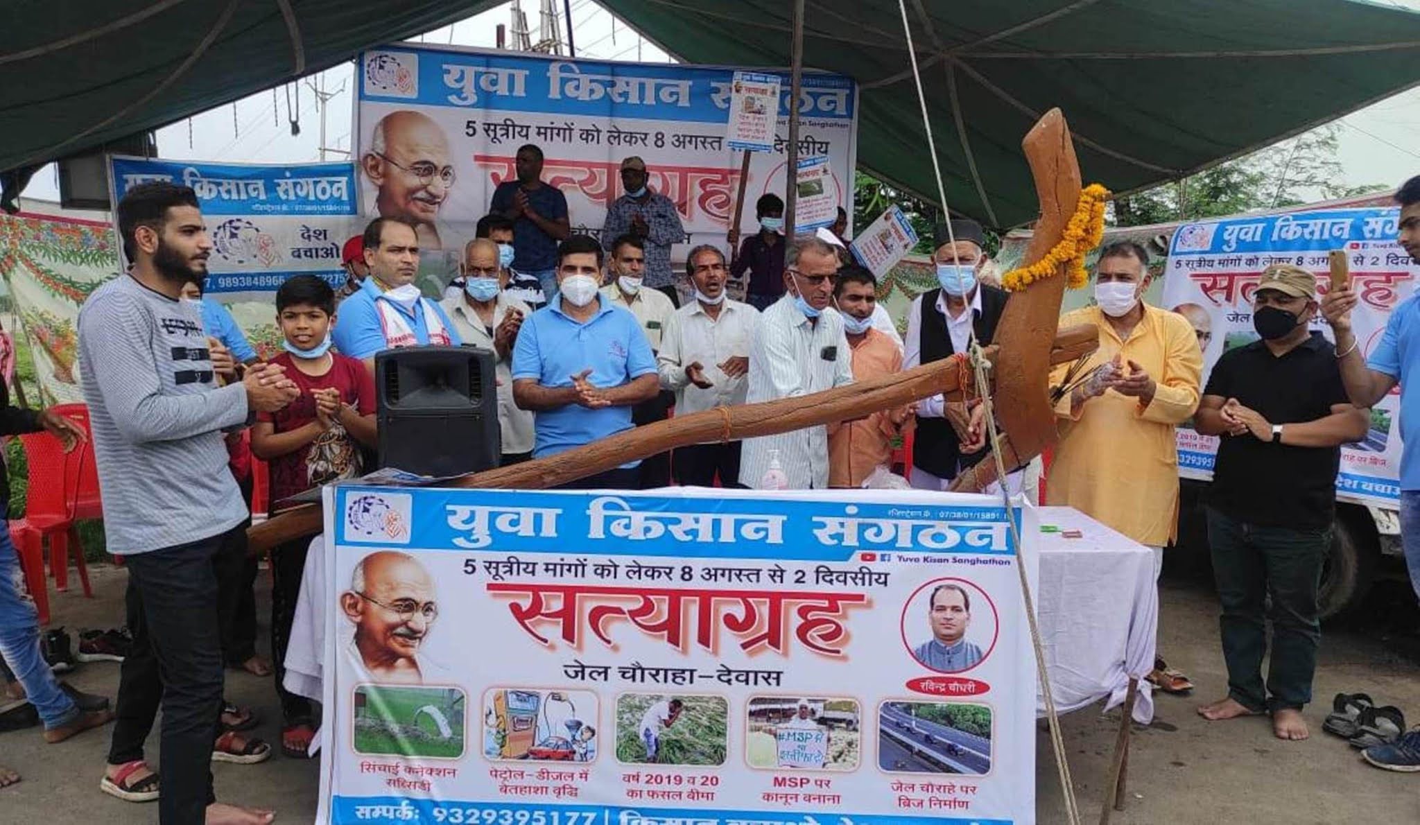 युवा किसान संगठन अध्यक्ष रविंद्र चौधरी ने प्रदेश सरकार को आड़े हाथों लेते हुए कहा कि सरकार 10 का अनुदान देने के लालच में पीछे की जेब से 2000 का नोट निकालने का काम कर रही है। जालसाजी, धोखाधड़ी, छलावा यह सारे शब्द को कोई अगर क्रियान्वित कर रहा है तो हमारी प्रदेश सरकार है। जिस तरीके की पेट्रोल डीजल में बेतहाशा लूट करके हमारी राज्य सरकार ले रही है। जिसके चलते प्रदेश के नागरिक लगभग विश्व का सबसे महंगा पेट्रोल डीजल खरीदने के लिए मजबूर है। महंगे पेट्रोल डीजल के चलते किसान अपने खेतों में जुताई और दवाइयों का छिडक़ाव नहीं कर पा रहा है। 100 रूपए लीटर का डीजल का उपयोग कर किसान के लिए खेती करना असंभव है। संगठन उपाध्यक्ष राजेश पटेल ने कहा अगर हम सब लोग समय पर ना जागे तो हमें 3 एचपी के कनेक्शन के 3500 रुपए की जगह 18000 व 5 एचपी कनेक्शन के लिए 4500 की जगह 28000 भरना पड़ेंगे जो कि किसानों के लिए असंभव है। जिस तरीके से सरकारों ने एलपीजी कनेक्शन में खाते में सब्सिडी ट्रांसफर करने के नाम पर लगभग सब्सिडी खत्म कर दी है। प्रदेश का आम नागरिक 900 का सिलेंडर लेने के लिए मजबूर है। इस सत्याग्रह प्रदर्शन में मुख्य रूप से रमेश पाटीदार, वेद प्रकाश ठाकुर, संतोष चौधरी, कमल पाटीदार, माखन सेठी, रवि गांधी, विकास चौधरी, अशोक दा पेनजान, बद्री बा कुंडीवाले, अर्जुन पांचाल सहित बड़ी संख्या में किसान उपस्थित हुए।