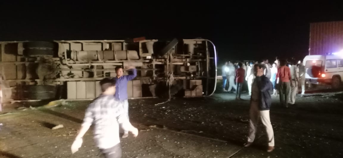 एबी राेड पर ग्राम चिड़ावद के पास स्थित स्वास्तिक रेस्टाेरेंट एंड फुड के सामने आगे जा रही बस ने जैसे ही ब्रेक लगाकर टर्न लिया वैसे ही पीछे से आ रही बस ने टक्कर मार दी। टक्कर इतनी जबरदस्त थी कि एक बस सड़क के नीचे ताे दूसरी सड़क के किनारे पलट गई।