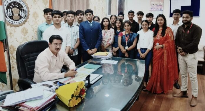 देवास। सेंट्रल इंडिया एकेडमी, देवास के कक्षा 10वीं और 12वीं के चुनिंदा छात्रों के लिए देवास जिलाधीश श्री ऋषव गुप्ता के साथ कलेक्टर कार्यालय में परिसंवाद आयोजित किया गया। विद्यालय की प्राचार्या श्रीमती रीटासिंह ने जानकारी देते हुए बताया कि इस अवसर पर जिलाधीश महोदय ने छात्रों को अपनी सफलता से जुड़े संघर्षों के बारे में विस्तृत जानकारी दी। उन्होंने छात्रों को करियर चयन और प्रतियोगी परीक्षाओं से जुड़ी महत्वपूर्ण जानकारियाँ भी साझा कीं।