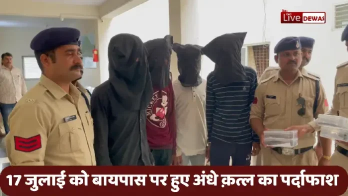 देवास लाइव. देवास पुलिस ने बायपास पर 17 जुलाई को हुए अंधे क़त्ल का पर्दाफाश कर दिया है. बायपास पर ट्रक पंचर होने की वजह से रुका था. क्लीनर पेशाब करने गया तो वहां आरोपी युवक शराब पी रहे थे. इसी बाद पर विवाद हुआ और क्लीनर की चाकू से गोद कर हत्या कर दी गई. पुलिस ने 7 में से 4 आरोपियों को गिरफ्तार कर लिया है.