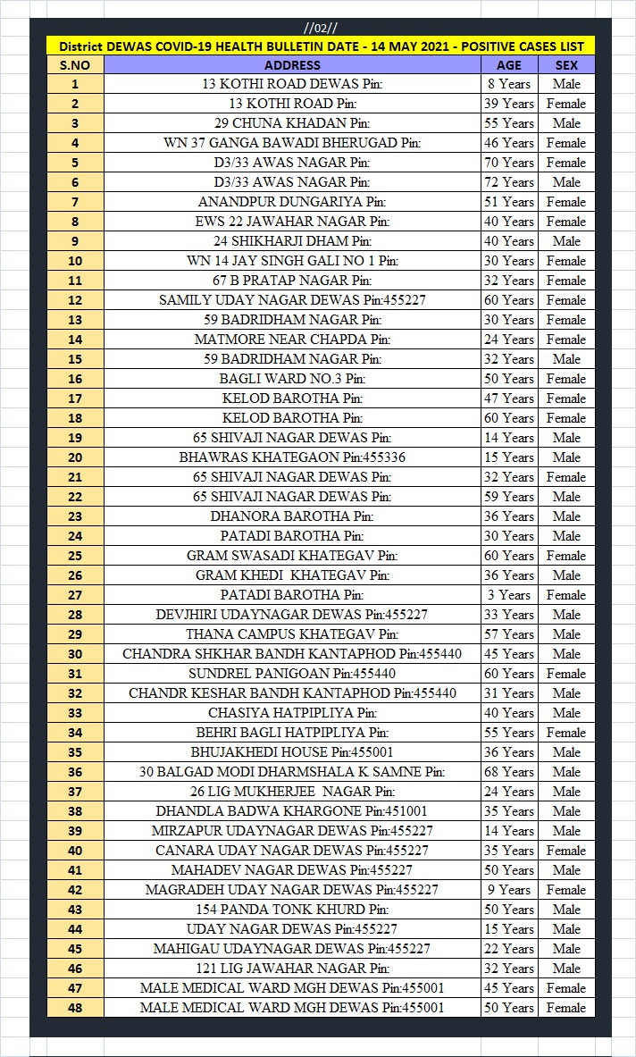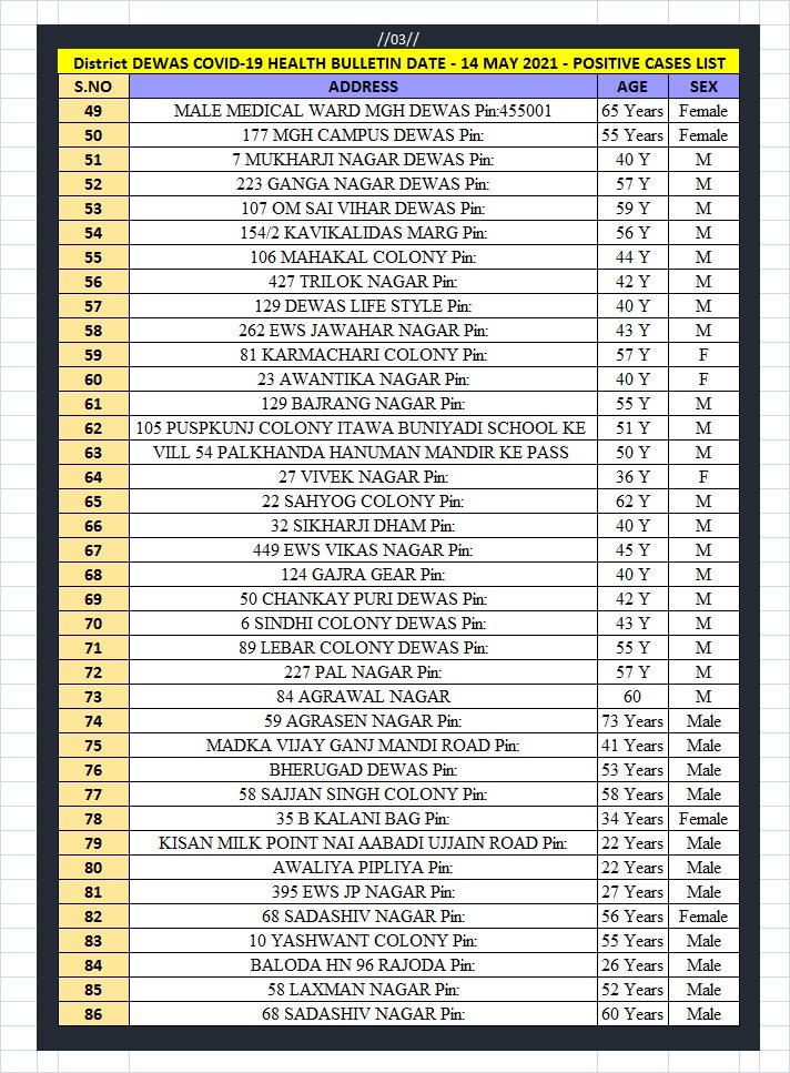 ◆ आज प्राप्त रिपोर्ट मे कोरोना संक्रमित (पाजिटिव) केसेस जानकारीः-संलग्न सूची-02,03,