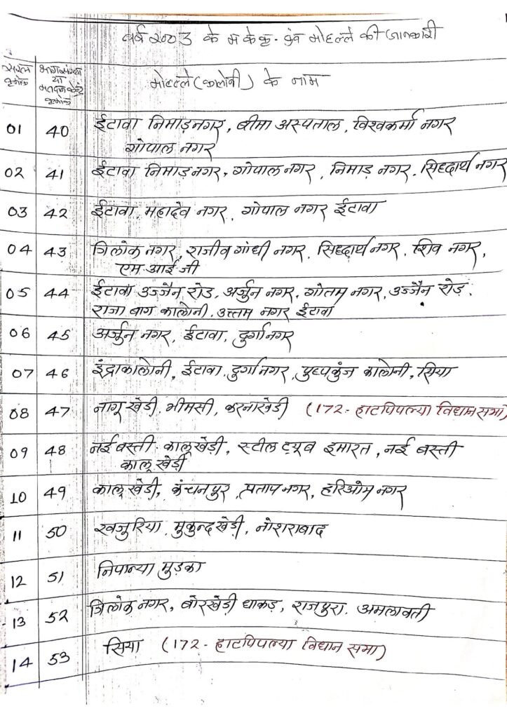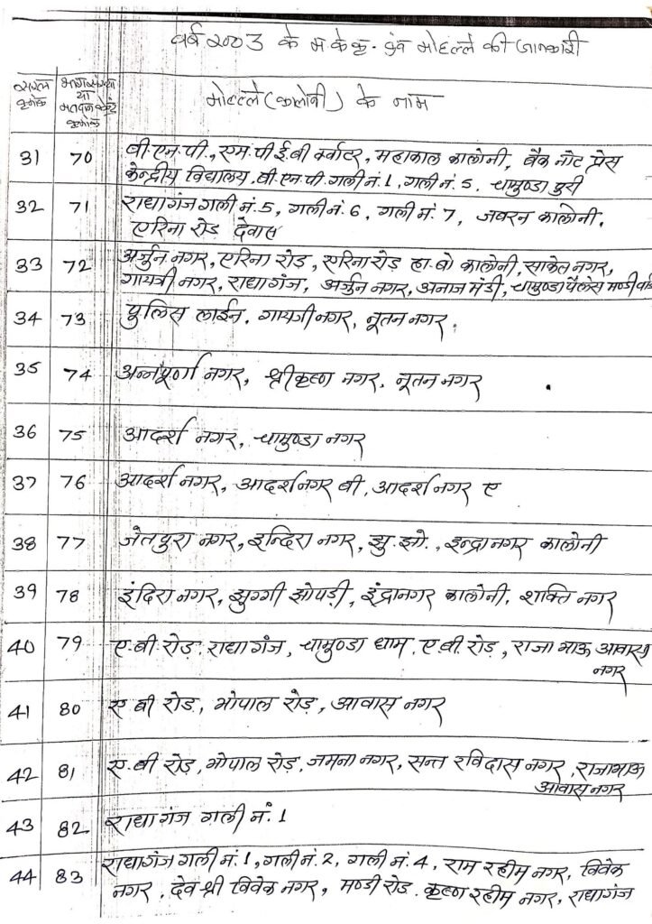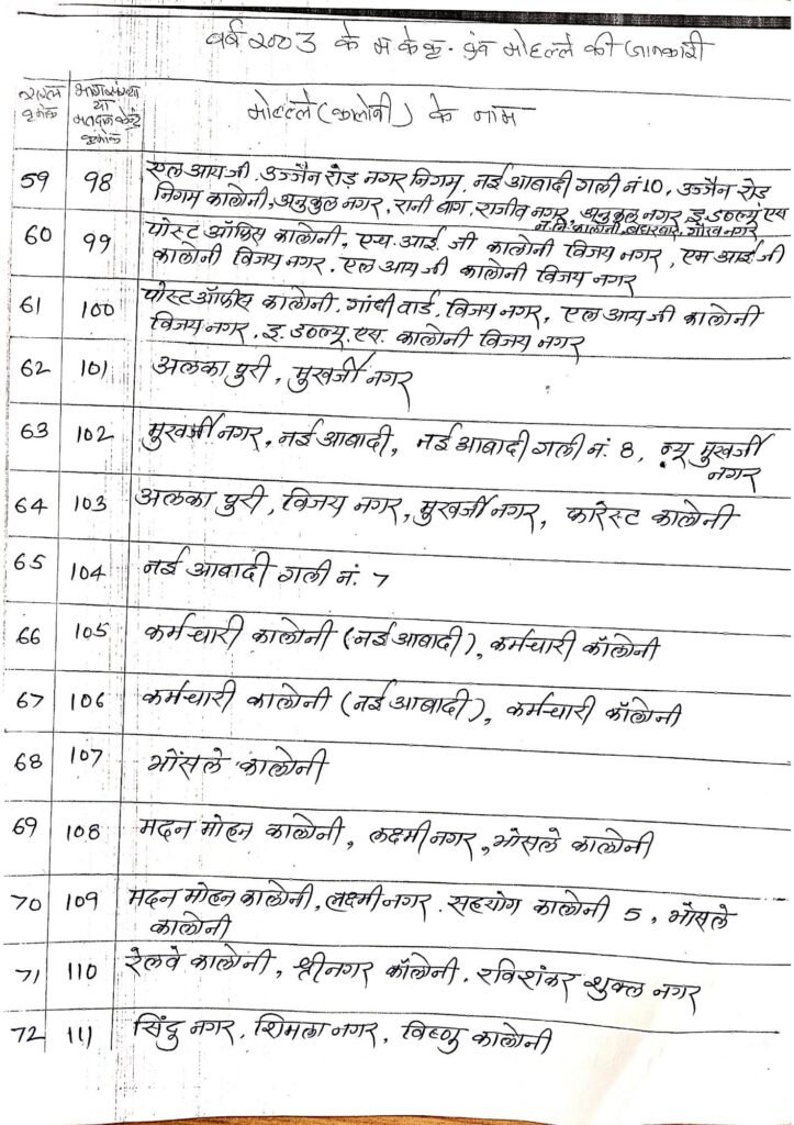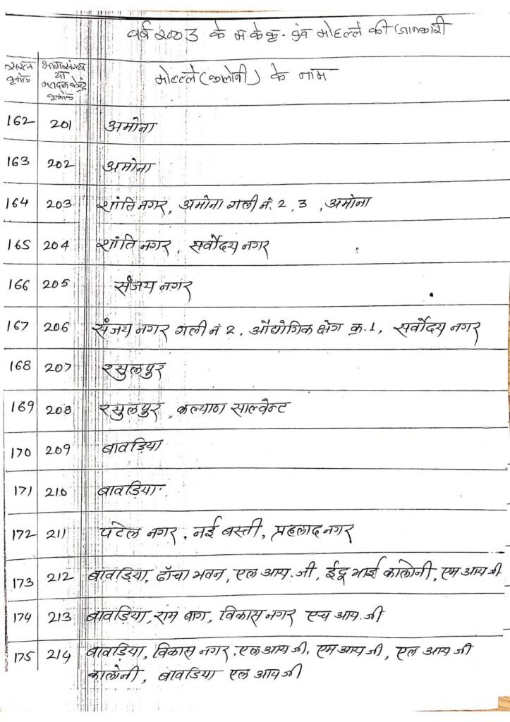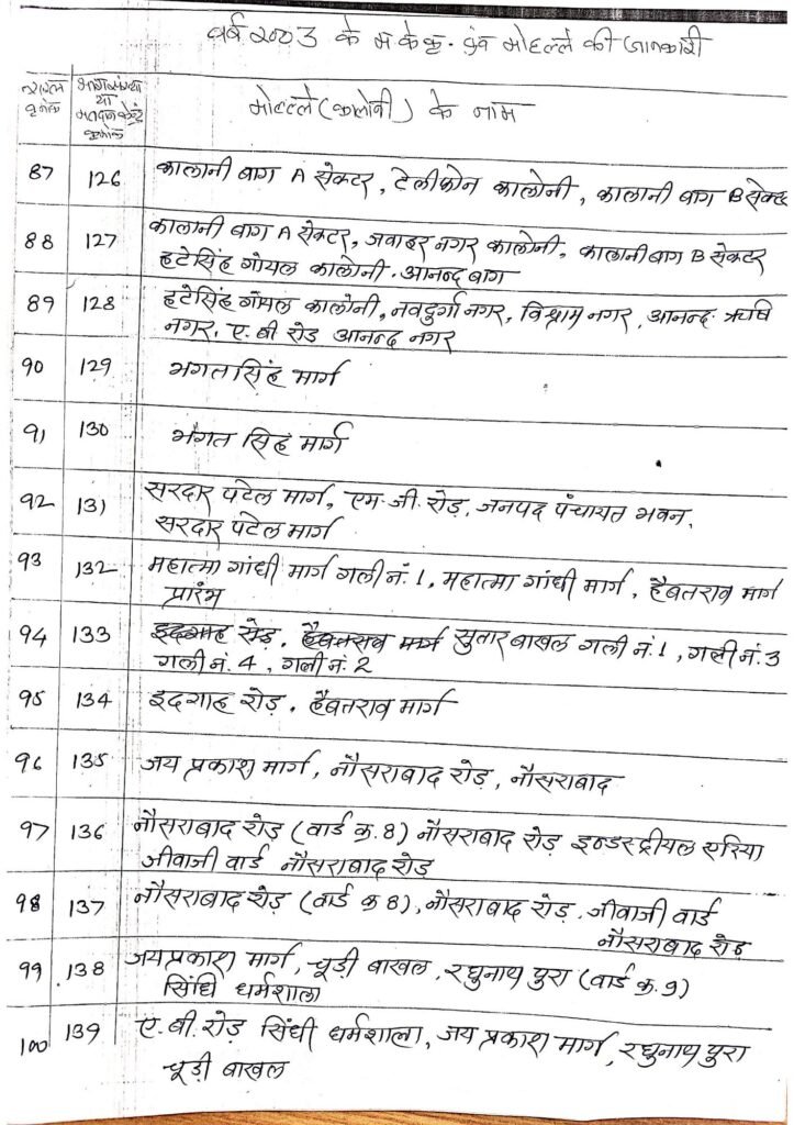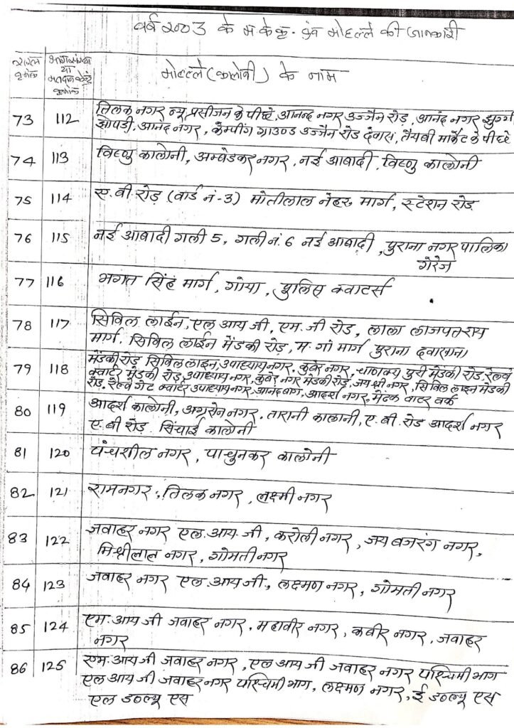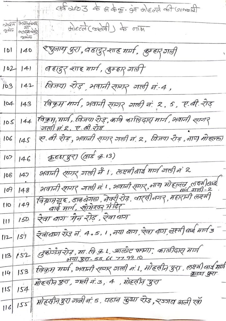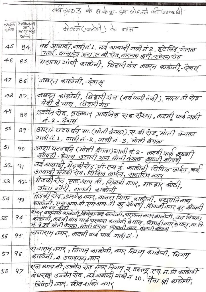 देवास में इस समय SIR के फॉर्म भरे जा रहे हैं। लोगों को सबसे ज्यादा समस्या 2003 की लिस्ट में अपना नाम ढूंढने में आ रही है। आपकी समस्या का निदान यह मोहल्ला सूची कर देगी। 2003 कि इस मोहल्ला सूची में पहले अपने मोहल्ले (जहां आप रहते थे) के नाम के आगे की लिस्ट की सूची का नंबर नोट कर ले।