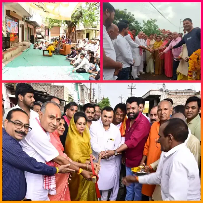 जिसके अन्तर्गत वार्ड क्रमांक 2 मे 40 लाख की लागत से न्यू देवास मे सडक निर्माण, वार्ड क्रमांक 3 मे 15 लाख की लागत से सतपुडा स्कुल आवास नगर की सडक के मरम्मत कार्य तथा वार्ड क्रमांक 45 नागदा मे 20 लाख की लागत से 3 गलियो मे सी. सी. रोड निर्माण कार्यो का भूमिपूजन विधायक श्रीमंत गायत्री राजे पवार के द्वारा महापौर गीता अग्रवाल, विधायक प्रतिनिधि दुर्गेश अग्रवाल, भरत चौधरी, मंडल अध्यक्ष सचिन जोशी, निगम स्वास्थ्य समिती अध्यक्ष धर्मेन्द्रसिह बैस, वार्ड पाषर्द मंजू मोदी, बिन्देश्वरी वर्मा, पूर्व पाठ्य पुस्तक निगम अध्यक्ष रायसिह सेंधव, पार्षद प्रतिनिधि विनय सांगते, मुकेश मोदी, राज वर्मा, के साथ किया गया।