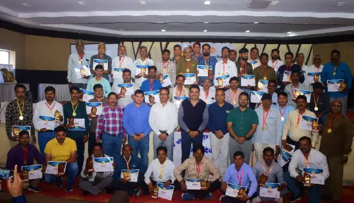 सृष्टि क्लब होटल में आयोजित समारोह में 52 लाइन कर्मचारियों को कंपनी के प्रति निष्ठापूर्वक कार्य करने हेतु उपभोक्ता सेवाओं के प्रति जागरूक रहने और सराहनीय कार्य के लिए प्रशस्ति पत्र से सम्मानित किया गया।