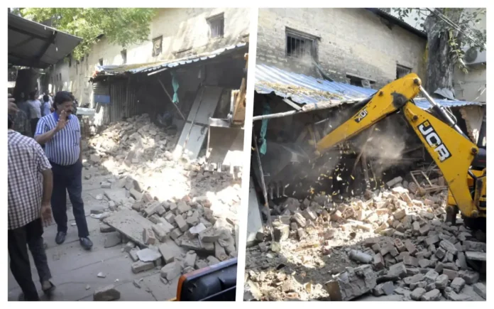 शासकीय भूमि पर किया गया अतिक्रमण निगम की टीम द्वारा तोडा गया