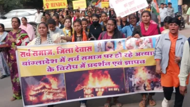बांग्लादेश में हो रही हिंसा के विरोध में देवास में सर्व समाज का विशाल प्रदर्शन