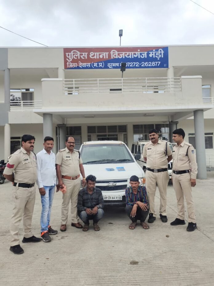 प्राप्त जानकारी के मुताबिक विजयगंज मंडी थाना अंतर्गत ग्राम रालामंडल में 2 दिन पहले फरियादी जितेंद्र पिता परमानंद राठौर परिवार सहित उज्जैन गए थे। उनके सूने मकान का ताला तोड़कर चोरों ने नगदी और लाखों रुपए के जेवरात चोरी कर लिए थे। विजयगंज मंडी पुलिस ने तफ्तीश करते हुए मामले में आरोपी शाकिर उर्फ कय्यूम पिता मन्नू शाह व खाजू पिता सलीम शाह दोनों निवासी रालामंडल को गिरफ्तार कर 8 तोला सोना, 500 ग्राम चांदी के जेवर, 12 हजार रुपए नकदी सहित चोरी की वारदात में उपयोग की गई कार को बरामद कर लिया गया है।