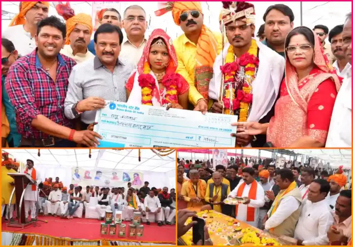 देवास. मुख्यमंत्री कन्या विवाह योजनान्तर्गत टोंकखुर्द में सामुहिक विवाह/निकाह सम्मेलन का आयोजन कृषि उपज मंडी प्रांगण टोंकखुर्द में हुआ। मुख्यमंत्री कन्या विवाह/निकाह सम्मेलन में जिसमें 416 कन्याओं का विवाह गायत्री परिवार द्वारा वैदिक मंत्रोचार एवं 06 कन्याओ का निकाह मुस्लिम रीति रिवाज द्वारा संपन्न कराया गया। मुख्यमंत्री कन्या विवाह/निकाह सम्मेलन में 422 दुल्हो की बारात भव्य जुलूस के रूप में हाथी घोड़े एवं बैंड बाजे के साथ फ्रीगंज चोराहा टोंकखुर्द से प्रांरभ होकर कृषि उपज मंडी प्रांगण टोंकखुर्द तक पहुंची। सम्मेलन में जनप्रतिनिधियों द्वारा नव दम्पत्ति को उपहार के रूप में मध्य प्रदेश शासन सामाजिक न्याय एवं दिव्यांग सशक्तिकरण विभाग के निर्देशानुसार 49 हजार रूपये राशि का चेक प्रदाय किया किया।