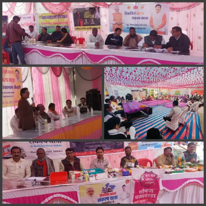 देवास . जिले में “विकसित भारत संकल्प यात्रा” का आयोजन ग्राम पंचायत एवं वार्ड स्तर पर किया जा रहा है। ‘’विकसित भारत संकल्प यात्रा’’ अंतर्गत देवास जिले के विभिन्न ग्रामों में शिविर आयोजित किये गये। “विकसित भारत संकल्प यात्रा” अंतर्गत आयोजित शिविर में सभी पात्र हितग्राहियों को केन्द्रीय योजनाओं लाभ दिलाया जा रहा है। विकसित भारत संकल्प यात्रा में ग्राम पंचायत नेवरी में ड्रोन का प्रदर्शन भी किया गया। जिले में ‘’विकसित भारत संकल्प यात्रा’’ में ग्राम पंचायत स्तर पर जन-जागरूकता की गतिविधियॉं संचालित की जा रही है।